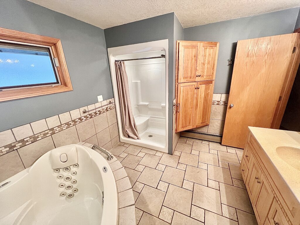 Stunning custom home with exceptional features don’t miss your chance to own this property that combines luxury, comfort, and functionality all in one remarkable package. Step inside to discover beautiful hardwood floors and soft-close cabinetry, highlighting the home’s thoughtful craftsmanship. The chef’s kitchen features a large island with granite countertops, perfect for cooking, entertaining, or gathering with family and friends. The spacious primary wing offers a true retreat, complete with a walk-in closet and a luxurious en suite bathroom featuring heated floors, a walk-in shower, your own private spa experience. Enjoy outdoor living at its best with a large Trex deck, perfect for relaxing or entertaining, overlooking a well maintained yard equipped with an underground sprinkler system. A custom-built shop provides endless possibilities ideal for hobbies, storage, and bathroom. Shop has 14 foot over head automatic door, and is heated, has large loft storage area. This is a rare opportunity to own such a unique and beautifully appointed property at an exceptional value.